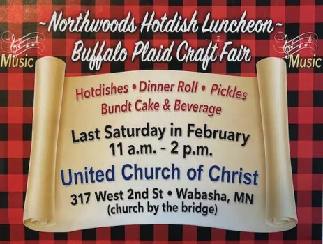 Join the Wabasha United Church of Christ (UCC) for their 18th Annual Northwoods Hotdish Luncheon & Craft Fair with from 11am-2pm. There will be over 25 hotdishes plus dinner rolls, pickles, bunt cakes and beverages. Admission is $15.United Church of Christ 317 2nd Street West, Wabasha, MN