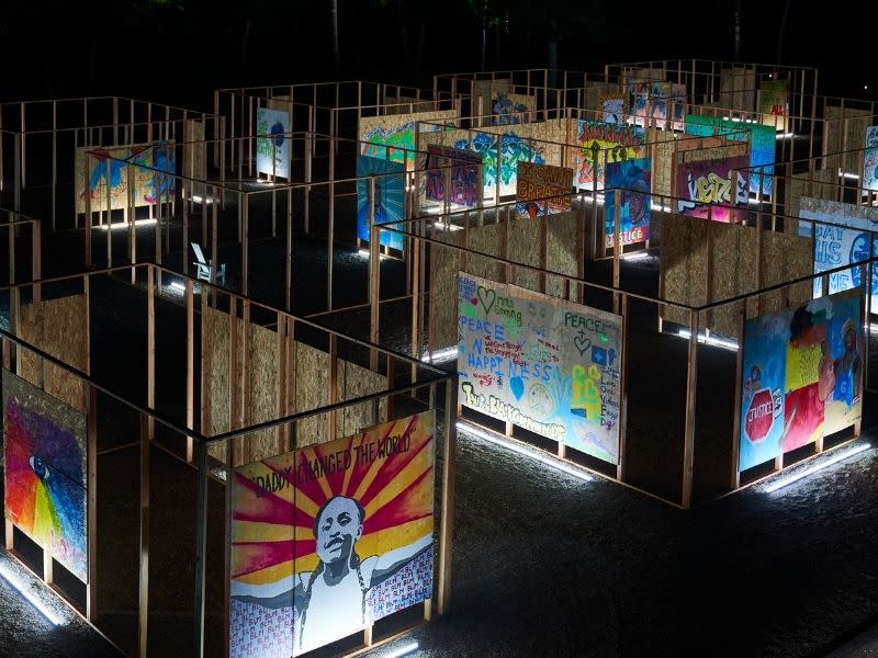 This project is informed by an exhibition of murals created during the 2020 uprising in Minneapolis, collected and preserved by local nonprofit Memorialize the Movement (memorializethemovement.com). The exhibit is hosted by the Catherine G. Murphy Gallery and the Frey Theatre at St. Kate’s from September 6 – November 16, 2025. For more information, visit gallery.stkate.edu.