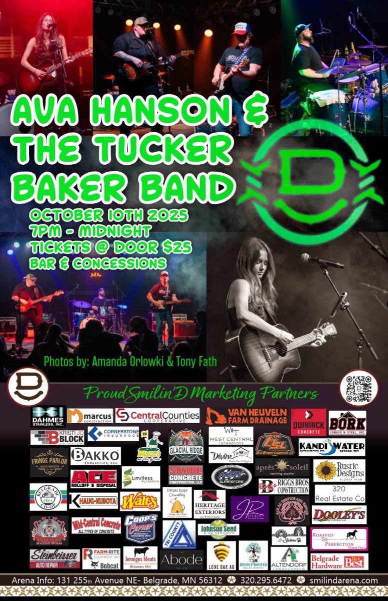 Local favorite, Ava Hanson, will be center stage at the Smilin’D Arena! A New London-Spicer High School graduate, Ava is a regular in the area with performances at the Rockin’ Robbins, New London Music Festival, the Rib Fest, Glacial Ridge Winery & O’Neil’s in Spicer!