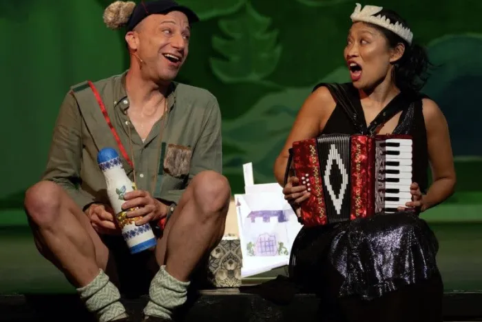 In this exuberant yet heartwarming original story, based on Slavic folklore, two performers play over fifteen roles, with the help of a host of puppets. The world of Baba Yaga and the Firebird bursts forth from the pages of a pop-up book and tells the story of a princess and a pauper who take a fantastical journey to beg the witch, Baba Yaga, for a firebird. Along the way, the wonder of the natural world and the enchanting people who inhabit it come alive through a musical form that is both unique and rooted in the oral tradition of storytelling.