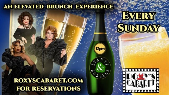 Join us for the Beauty and Bubbles Drag Brunch this Sunday at 11:00 AM and get ready for a fabulous experience filled with glamour, laughter, and great food at Roxy's Cabaret.