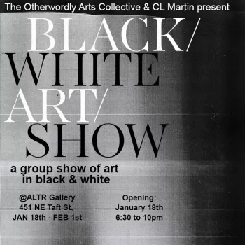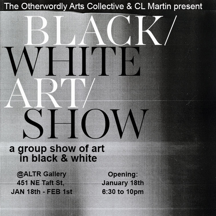 View black and white art from 10 visual artists in the Twin Cities. Curated by CL Martin and hosted by Otherworldly Arts Collective at ALTR Gallery.