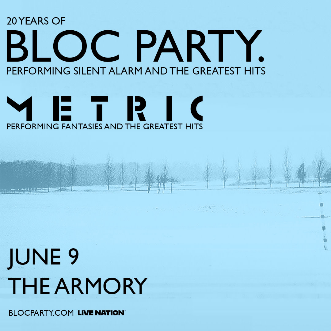 Bloc Party celebrates 20 years performing Silent Alarm and their hits at The Armory on June 9th with special guest Metric, performing Fantasies and their greatest hits!