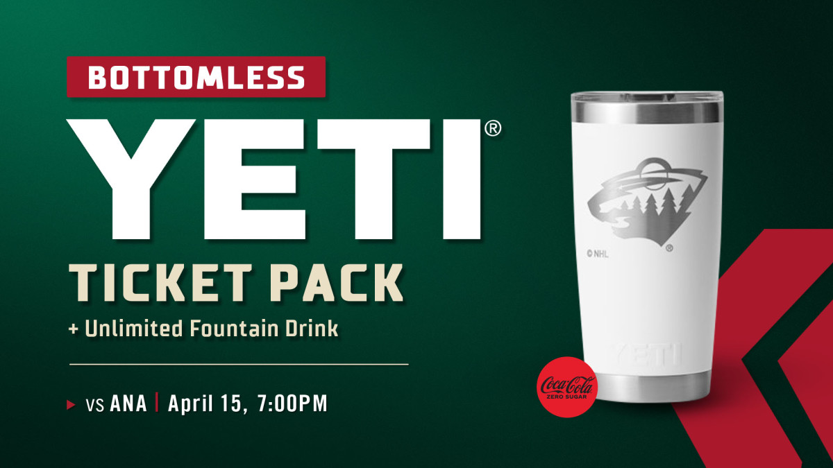 Join us on April 15th as the Wild take on the Ducks. This package includes your game ticket, a white 20oz Wild branded Yeti Tumbler AND unlimited fountain soda refills on game day.