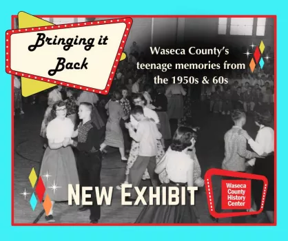 The Waseca County Historical Society will have an exhibit on display from June 18th- August 30th, entitled, “Bringing it Back,” Waseca County’s teenage memories from the 1950s and 60s. Guests can take a walk down memory lane with us, and reminisce about their own teen years, or learn about a cherished era at the very dawn of teen culture. Also, an immersive photo op set will be available for people to come take photos of themselves with their cell phones or cameras.