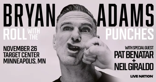 "Heaven" and "Summer of '69" singer Bryan Adams brings his 'Roll With The Punches' Tour to Target Center on November 26th with special guest Pat Benatar + Neil Giraldo! Make sure to get your tickets now while you still can!