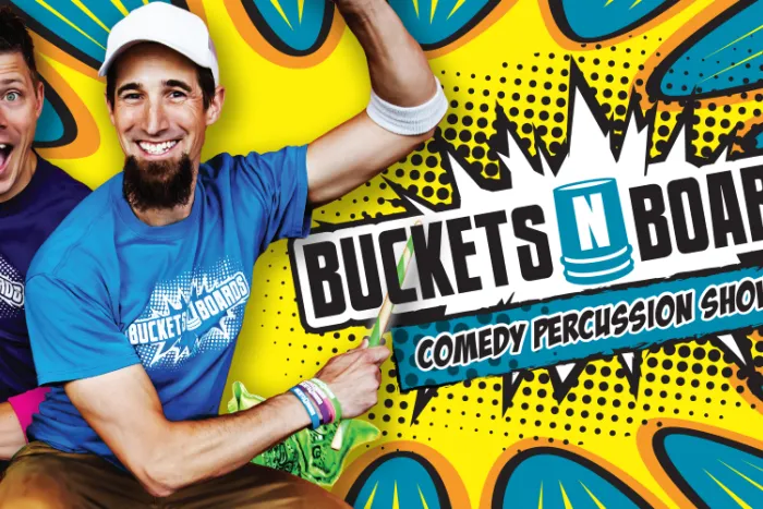 Buckets N Boards is a hilarious and high-energy show chock-full of amazing percussion, ridiculous songs, spectacular tap dancing, inventive instrumentation and an incredible variety of musical talents! Matthew Levingston and Gareth Sever have hand crafted a fresh and unique clean comedy experience for the entire family to enjoy! Buckets N Boards have toured the world and are currently one of the top requested headlining acts for Disney Cruise Lines. They have been featured twice with the Kansas City Symphony and are currently heading into their 14th Award Winning season in Branson, MO! Regarded as a must see show for any evening out with the family, their unexpected comedy and upbeat personalities will leave you laughing for the rest of your week. See you there!
