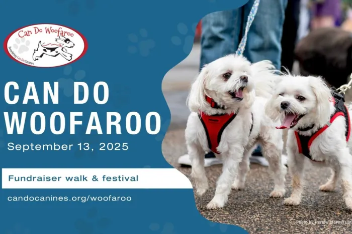Bring your friends (the furry ones too!) and help us celebrate the amazing partnerships of assistance dogs and the people who need them. This outdoor, family-fun event includes a one-mile fundraising walk, live music, a dog costume contest, an assistance dog demonstration, dog-centric vendors, and more. Individuals can register at www.candocanines.org/woofaroo on their own or as part of a team, and everyone is encouraged to collect pledges and donations toward this fundraiser.