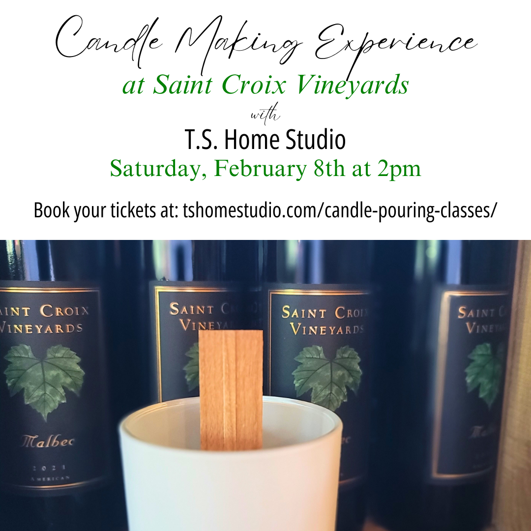 TS Home Studio is bringing its Candle Pouring Experience to Saint Croix Vineyards!