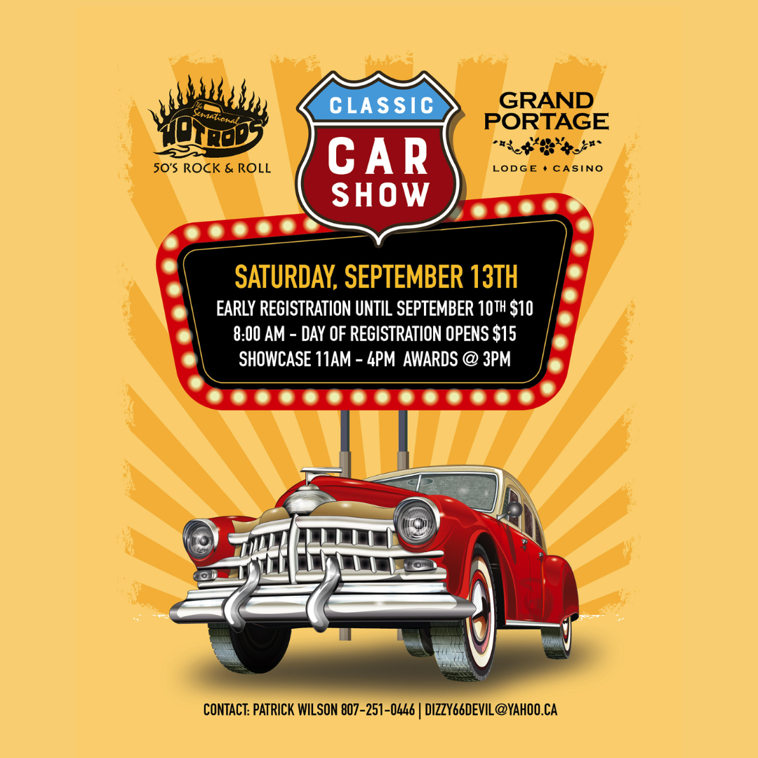 Grand Portage Lodge and Casino will host a Car Show with food, fun and wicked cool cars & trucks, Saturday, September 13, 2025.