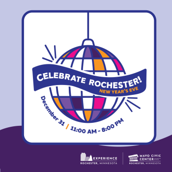 Experience Rochester is pleased to announce the return of a community tradition to ring in the new year. The 3rd Annual Celebrate Rochester! New Year's Eve will take place at Mayo Civic Center on December 31, 2024 from 11:00 a.m. - 8:00 p.m.