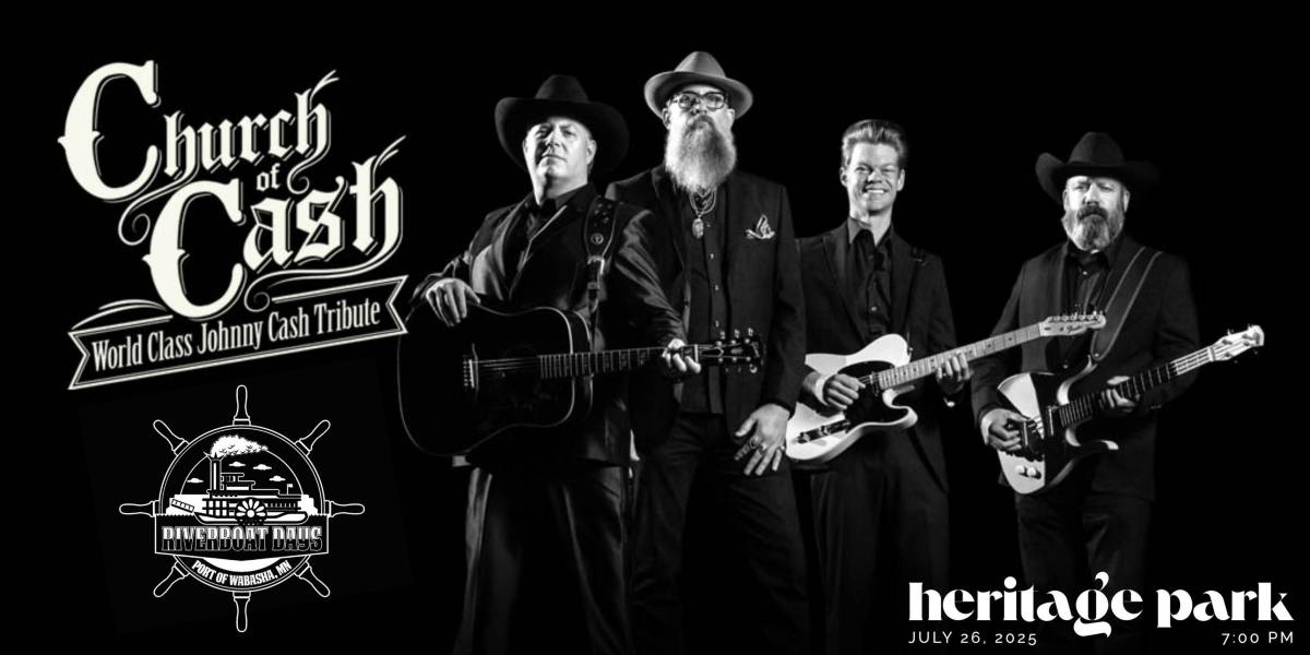 Saturday, July 26, 2025 | 7:30 PM | Heritage Park, Wabasha, MNGet ready, Wabasha—because the Man in Black is coming back… through the unforgettable power of Church of Cash. Kicking off Saturday night’s live music at the 47th Annual Riverboat Days, Jay Ernest and his phenomenal band will transport you straight into the heart and soul of Johnny Cash’s legendary sound. With a voice that echoes the deep, resonant tone of Cash himself, Jay doesn’t just play the part—he becomes it. From “Folsom Prison Blues” to “Ring of Fire,” “I Walk the Line” and beyond, Church of Cash delivers a high-octane tribute that’s more than a concert… it’s a revival.Backed by world-class musicians and filled with stories and soul, this show is a must-see for lifelong fans and newcomers alike. Whether you're two-steppin’, singing along, or just soaking in the atmosphere under the stars, this performance promises to hit all the right notes. From Nashville to Germany, this nationally and internationally touring band has wowed crowds around the globe—and now they’re bringing the magic to Heritage Park for one unforgettable night. Don’t miss your chance to be a part of the legend. The Church of Cash is in session.#ChurchOfCash #JohnnyCashTribute #RiverboatDays2025 #WabashaMN #LiveMusicUnderTheBridge #ManInBlack #HeritageParkConcert #WabashaWeekend #FolsomVibes #RingOfFireLive #CashFansUnite #SmallTownBigSound