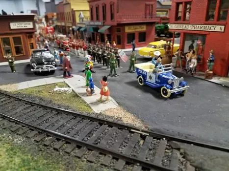 Our Circus Train reenacts this operation on our large O-scale layout with an operating Circus Train, several displays and a Parade staged in one of our towns.