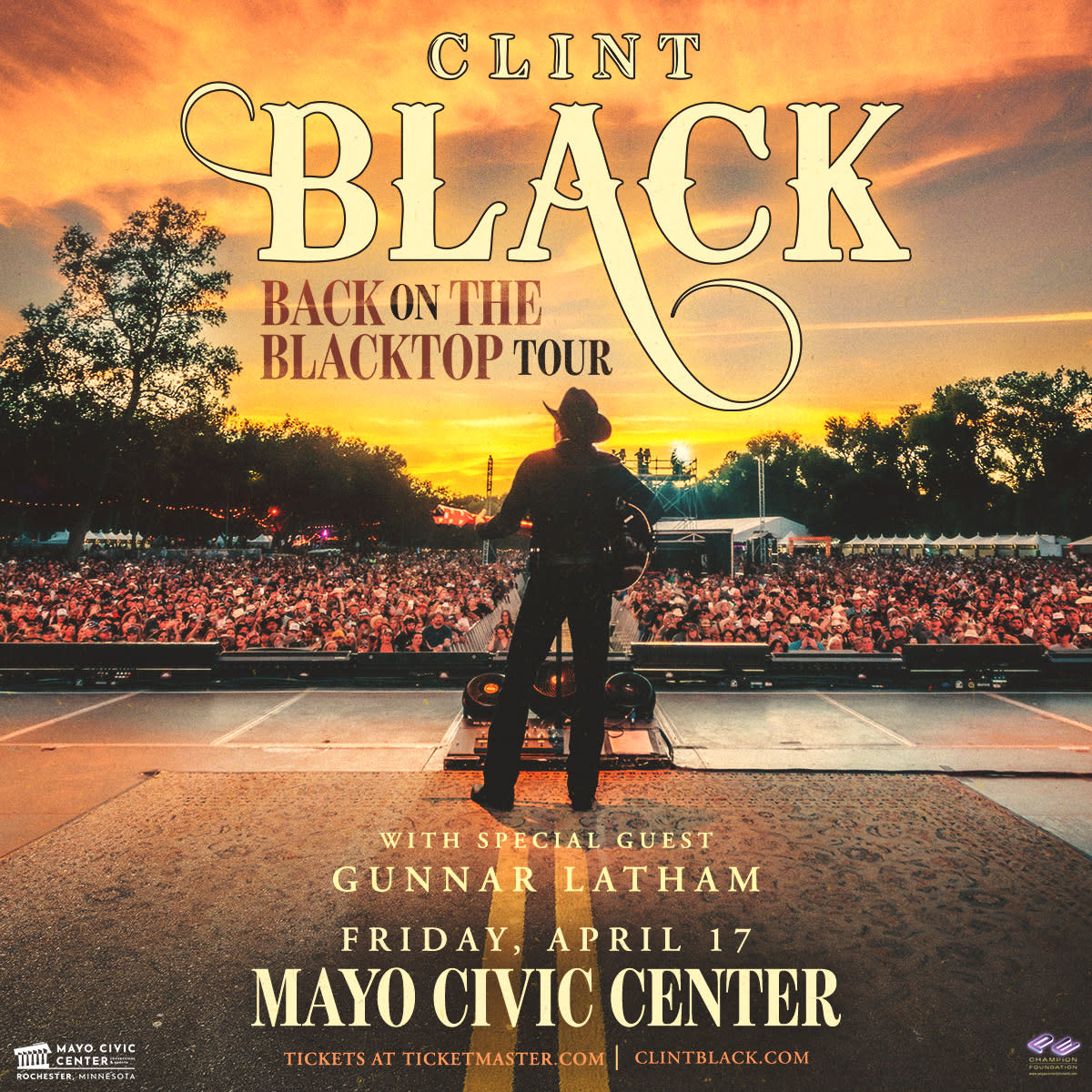 Country Star Clint Black is bringing his Back On The Blacktop Tour to Mayo Civic Center on Friday, April 17, 2026.