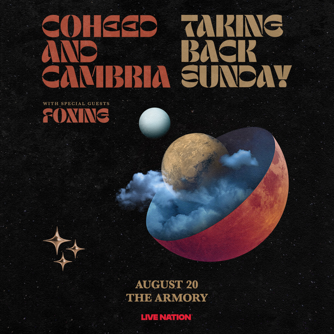 Coheed & Cambria and Taking Back Sunday are coming to The Armory on August 20th with special guest Foxing. Secure your tickets today!