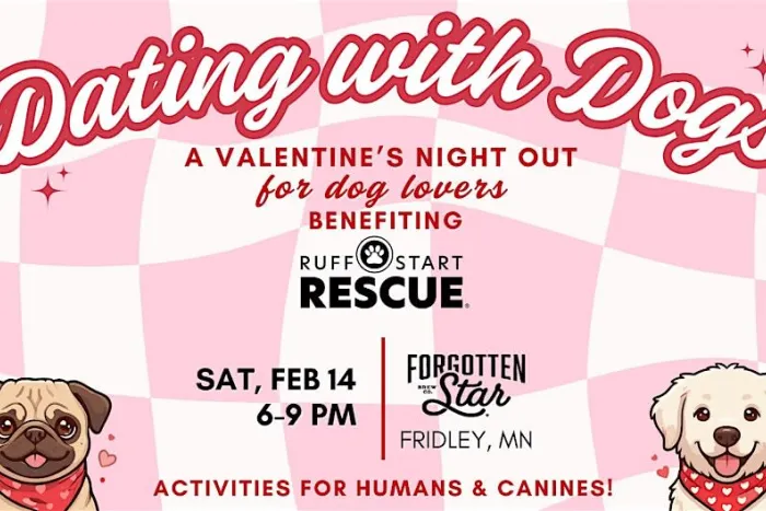 Join us at Forgotten Star Brewing in Fridley this Valentine's Day for "Dating with Dogs," a singles social & dog-friendly Valentine's Day fundraising event! Whether you're single or not, own a pup, or are just a dog lover-- everyone is invited to celebrate with us! Well-behaved dogs are welcome in the taproom. We'll have tons of fun activities for both humans and canines! $10 suggested donation supports rescue animals. Donations will be matched up to $500 by Forgotten Star Brewing!