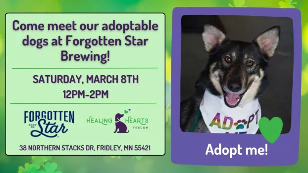 Join Healing Hearts Rescue at Forgotten Star Brewing on Saturday, March 8 to meet adoptable dogs and puppies!