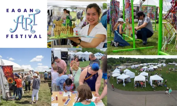 The annual Eagan Art Festival will celebrate 31 years in 2025! Located at the Central Park Fair Grounds in Eagan, MN, this event provides free art experiences for 10,000+ visitors annually and showcases 100+ artists covering multiple disciplines, including visual, music, and performing arts. Experiences such as artist demonstrations and a kids scavenger hunt offer free take-away items for participant.