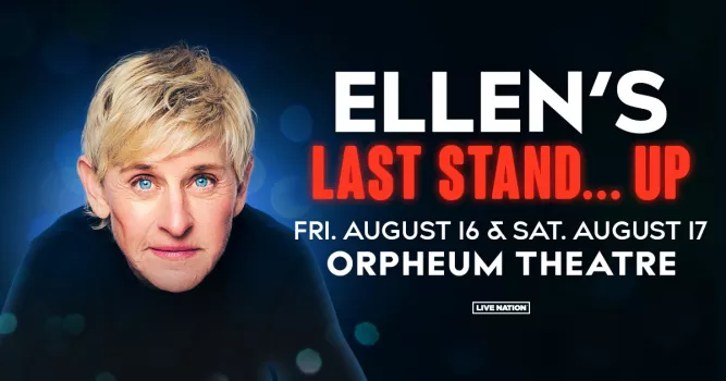 Ellen Degeneres brings her tour to the stage at Orpheum Theater for three nights in a row, this August 15th, 16th, and 17th.