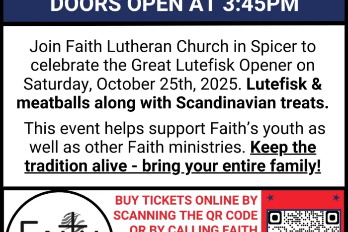 Tis’ the season to eat Lutefisk & Meatballs and embrace your Scandinavian Heritage or experience a tradition that is decades old. Faith Lutheran Church of Spicer hosts the first Lutefisk Dinner of the season in the area!