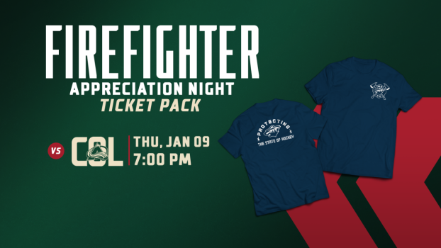 Help us celebrate our brave hometown heroes during Firefighter Appreciation Night on Thursday, January 9 as the Wild take on the Colorado Avalanche. Ticket pack offer includes a Minnesota Wild Firefighter branded t-shirt. Additionally, a portion of each ticket purchased is donated to the St. Paul Fire Foundation.