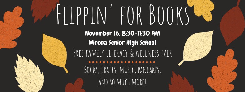 Stop by the Winona Senior High Concourse on Saturday, November 16th from 8:30 to 11:30 AM for this FREE family literacy & wellness fair for families with young children; older siblings welcome!There will be storytelling, early literacy crafts, wellness information booths, free pancake breakfast from 8:30 to 10 AM, music from Amanda Grace at 10 AM, and each child attending goes home with a book!This event is organized by Winona Public Library, with many thanks to our generous community sponsors including the Celanese Corporation, Winona Early Childhood Initiative, Hy-Vee, Bluff Country Co-op, Midtown Foods, Rochester Wholesale Fruit, and Ziebell's.