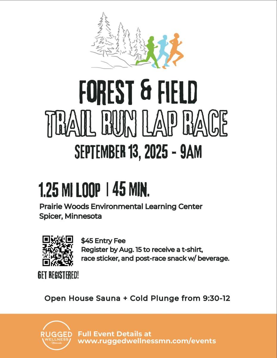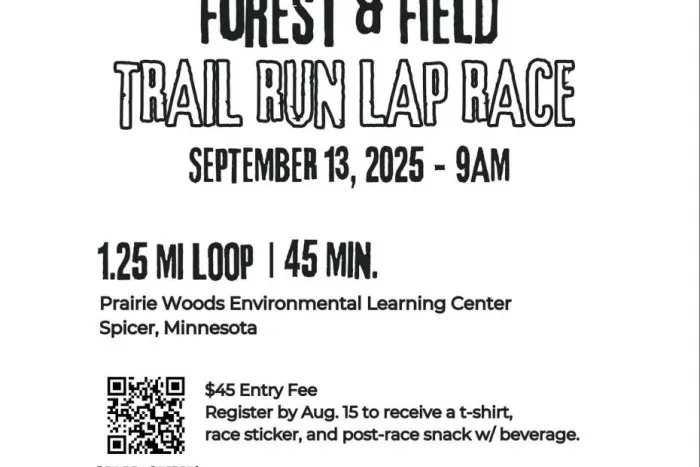 We are thrilled for you to join us at our new trail run lap race event, hosted at the beautiful Prairie Woods Environmental Learning Center in Spicer, Minnesota!