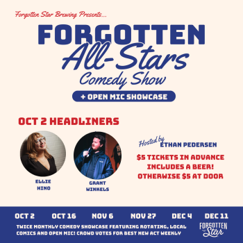 Join us for a night of laughs and knee slaps! We're rolling out our new Forgotten Stars Comedy Night Showcase for the fall and winter.