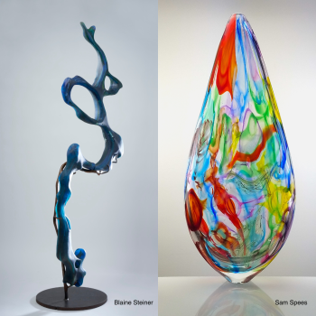 Samuel Spees is an independent artist, designer, and craftsperson based in Nashville, TN, who creates both functional and sculptural works in glass, wood, and metal. He collaborates with his partner, Blaine Steiner, an MFA graduate from Tulane University, whose large-scale cast glass sculptures embrace the contradictions of glass as a material. Together, they explore the intersection of craft, design, and fine art, blending Samuel’s playful, technical approach with Blaine’s focus on challenging the expectations of glass, creating pieces inspired by memories, sensory experiences, and the unexpected strength of their chosen mediums.