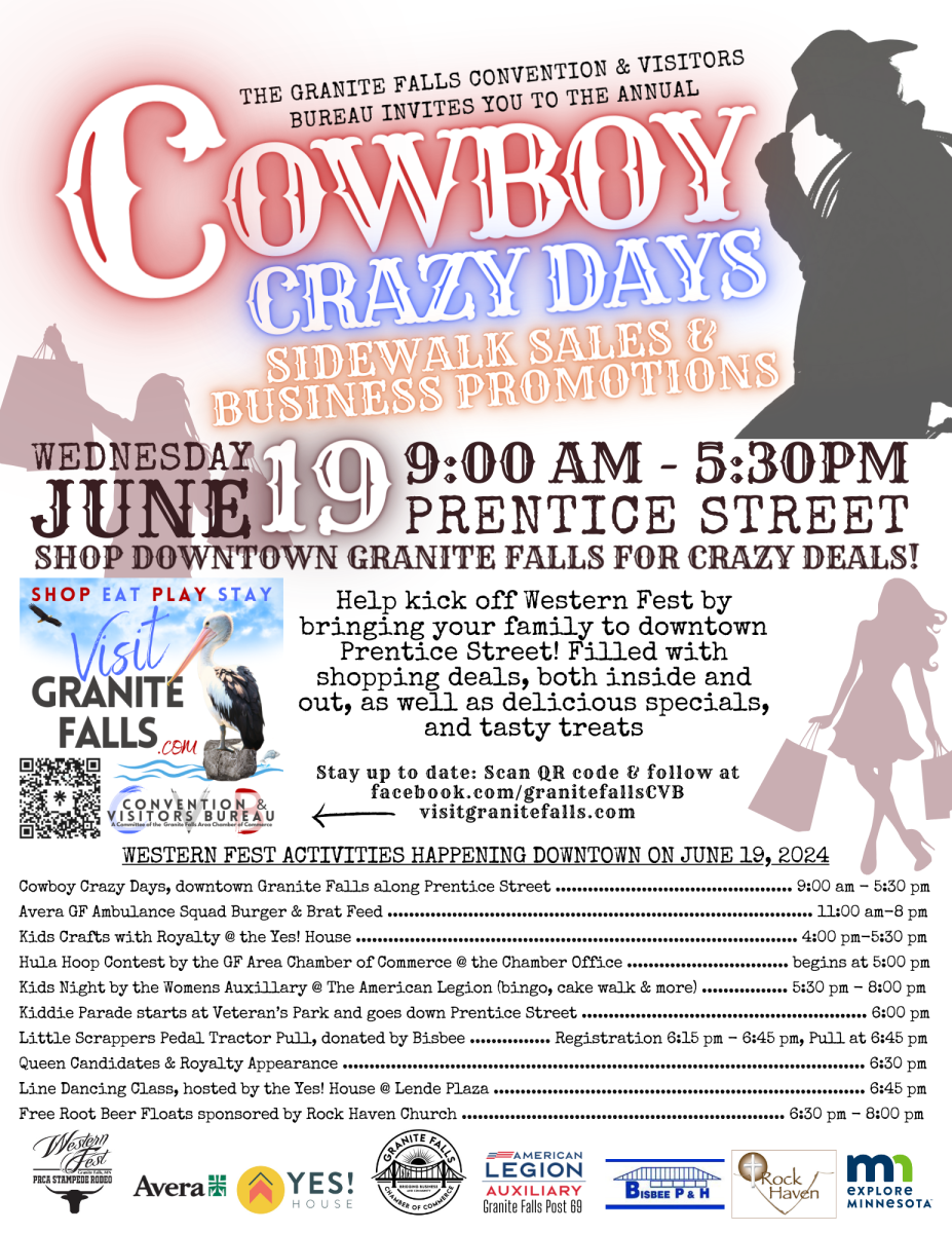• Granite Falls CVB's Cowboy Crazy Days . . . . . . . . . . . . . . . . . . . . . . . . . . . . . . . . . . . . . . . . . . . . . . . . . . 9am - 5:30pm
