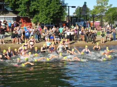 The race starts off with a nice swim in sandy Green Lake. The bike ride takes a path of gently rolling hills around the Green Lake area, with a smooth run to the finish. The course is well marked with distances clearly posted.