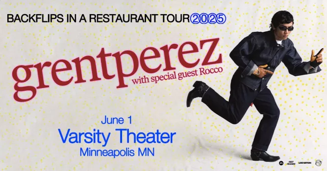 Grentperez is bringing the “Backflips in a Restaurant Tour” to Varsity Theater on June 1st with special guest Rocco! Make sure to get your tickets now while you still can!