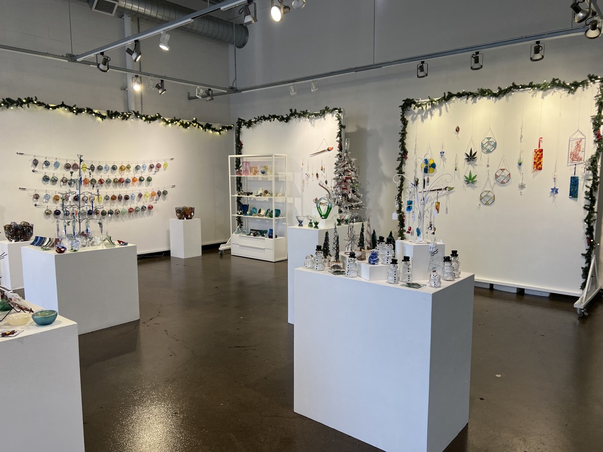 Foci Minnesota Center for Glass Arts’ Holiday Glass Marketplace is open for shopping November 18-December 21, 2025, Tuesdays-Sundays 11am-6pm. The Holiday Glass Marketplace features a wide selection of glass art pieces from high end home decor to fun stocking stuffers and more! Items such as sculpture, jewelry, tableware, and ornaments all made by local artists. We are celebrating the season with two family friendly events: “Small Business Saturday” November 29th and “Design & Dazzle” December 20th.