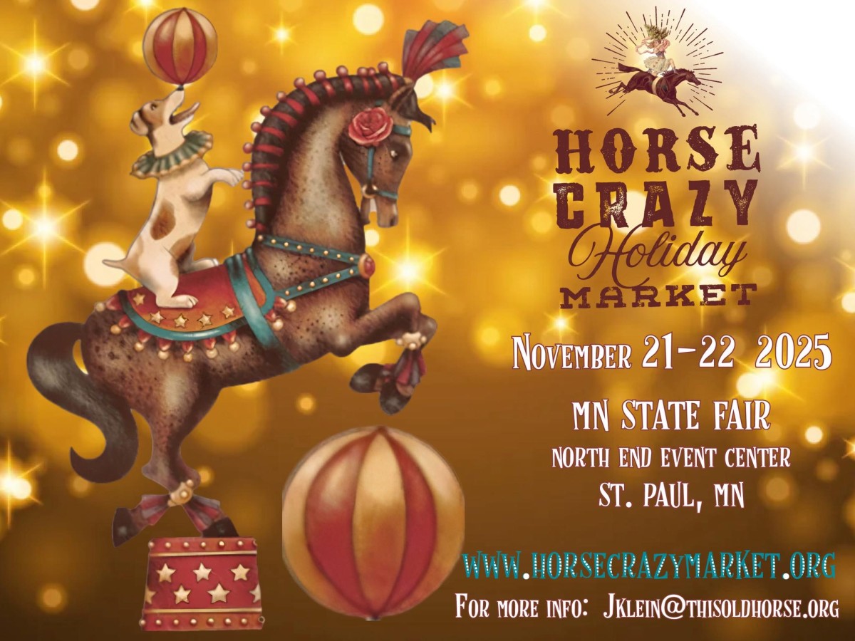 Horse Crazy Holiday Market for everyone, Horse Crazy or not. 80 unique vendors, makers, artists, practitioners, Authors… Carriage rides around the fair, Mini horses to meet, Great food and drink, Dog and pony Show -costume contest, Tack swop, Music, Prizes, and more surprises to come