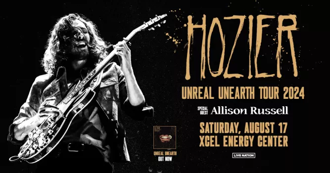 Hozier brings Allison Russell to St.Paul for his “Unreal Unearth Tour 2024” this Summer on August 17th.