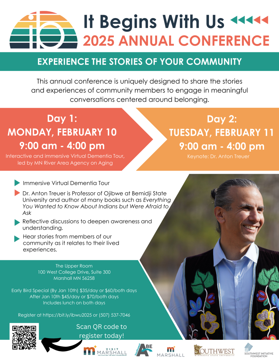 Tuesday: Keynote Dr. Anton Treuer; a professor of Ojibwe at Bemidji State University, Author of many books such as Everything you wanted to know about Indians but were afraid to ask.