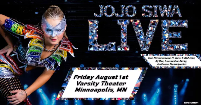 JoJo Siwa is hitting the stage at Varsity Theater on Friday, August 1st! She’ll be delivering an exciting live performance packed with both new and classic hits, plus a DJ set full of immersive party vibes and audience interaction! Don't miss out – grab your tickets while they're still available!