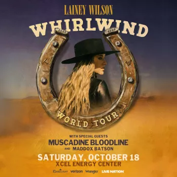 Grammy, CMA and ACM Award-winning artist Lainey Wilson has confirmed her Whirlwind World Tour to kick off in March, coming to St. Paul with special guests Muscadine Bloodline and Maddox Batson. Produced by Live Nation and sponsored by Coors Light and Wrangler, the tour will include a stop at Saint Paul's Grand Casino Arena.