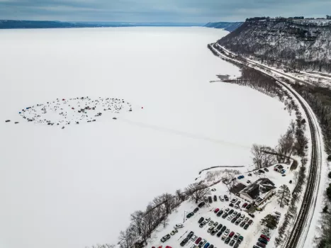 Enjoy a day of frozen fun at this makeshift ice house village on Lake Pepin!