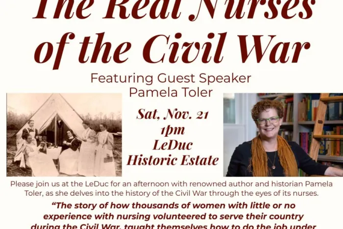 Please join us at the LeDuc for an afternoon with renowned author and historian Pamela Toler, as she delves into the history of the Civil War through the eyes of its nurses.