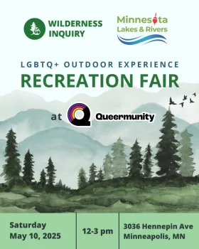 The LGBTQ+ Outdoor Experience Recreation Fair is a free, public event celebrating outdoor activities, wellness, and recreation within the LGBTQ+ and BIPOC communities. This one-day fair will feature door raffle giveaways, vendor booths, a free gear swap, and guided activities focused on promoting outdoor experiences, inclusive recreation, as well as physical and mental well-being.
