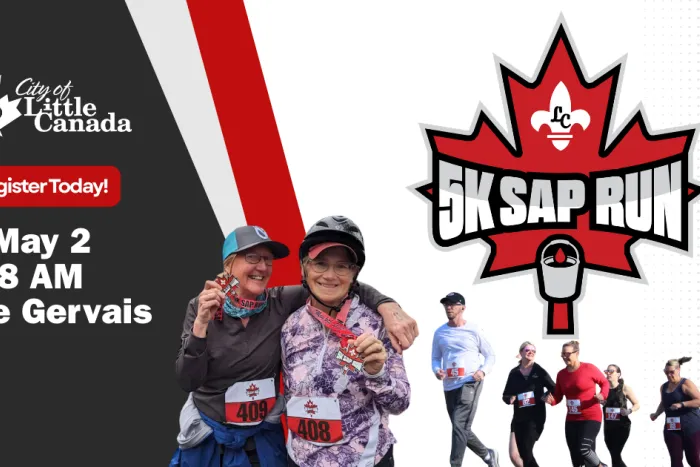 Just as the maple sap runs after the long winter gives way to spring warmth, runners can also get out and run in the sun at the Little Canada 5K Sap Run around beautiful Gervais Lake. Little Canada’s logo includes a maple leaf, which was the inspiration for this spring race. Join us for a competitive race or a fun run/walk and start the spring off on the right foot. Participants will receive a Sap Run t-shirt, finisher's medal, and swag bag with a mini bottle of Bell's Maple Syrup.