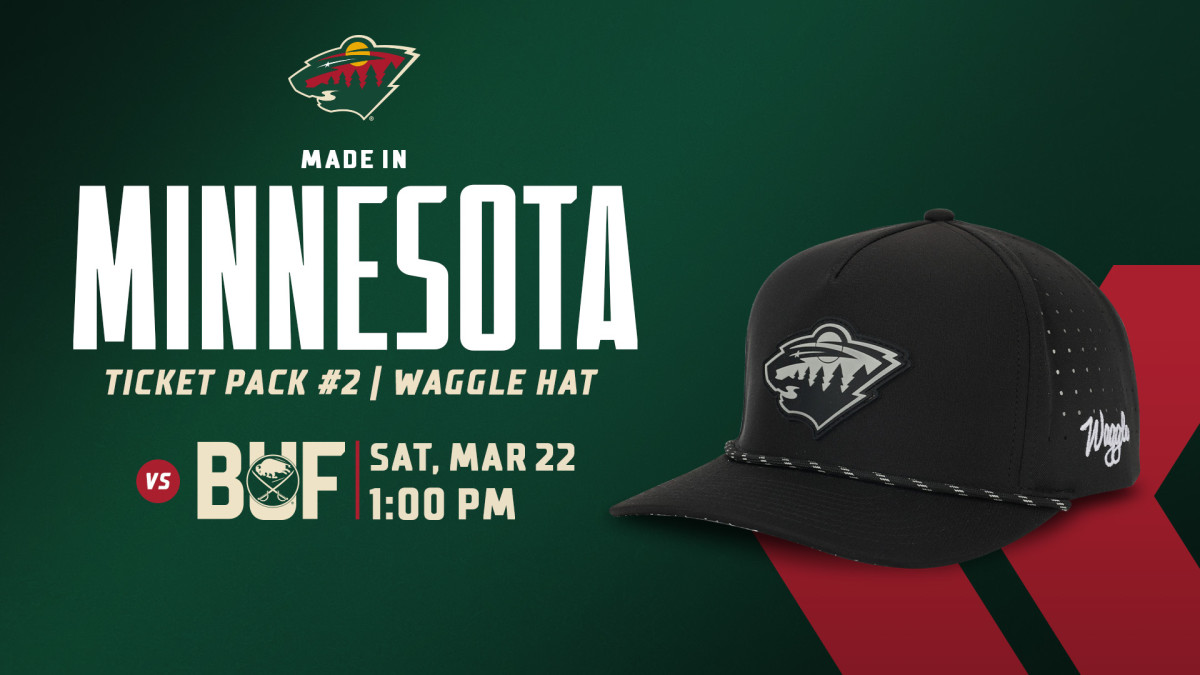 Represent the Wild in style as we partner with the Minnesota based brand, Waggle, for an exclusive Wild glow -in-the-dark hat. This package includes your game ticket to watch the Wild face-off against the Sabres and the Wild x Waggle Hat.