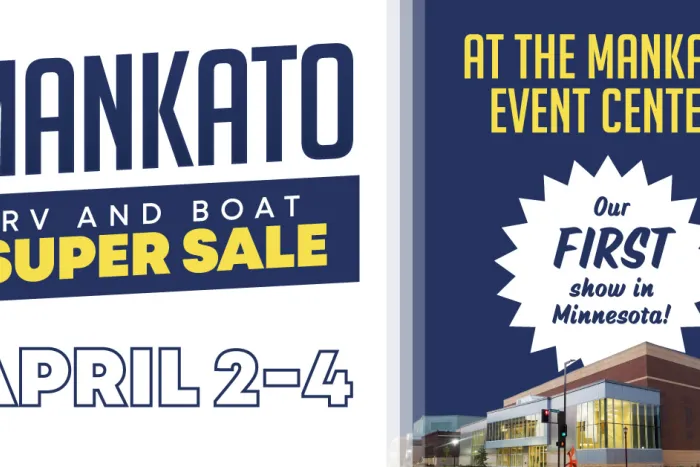 We're excited to have our VERY FIRST RV & Boat Show in Minnesota, happening April 2-4! Join us at the Mankato RV & Boat Super Sale at the Mankato Event Center for UNBEATABLE savings on the RV or boat of your dreams, all from the brands you know and trust. Enjoy FREE admission, giveaways, and much more.