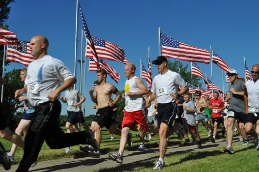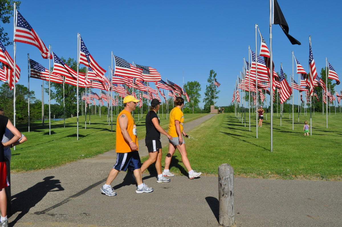 Race start time is 8am. The start location will be at the Flags of Honor Memorial Park. Plan to be at the starting line ten minutes ahead of your start time for the prerace meeting.
