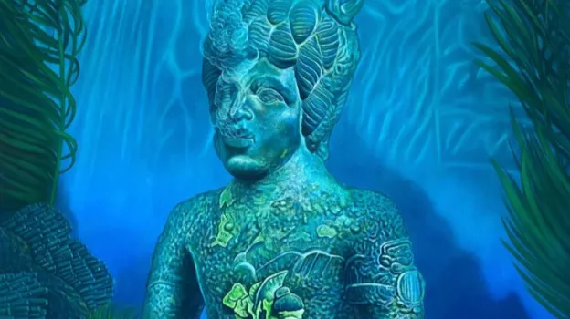Santa Cruz, CA based artist Kajahl's work is inspired by the ancient world. Through his oil paintings, he brings fictional characters to life in imagined scenes. The works in Ulta Mare are inspired by the sea and ancient heritage, using portraiture to challenge and overturn white, European historical narratives. Kajahl reimagines Greco-Roman artifacts, depicting Africans as mystical seaborne figures, redefining the historical portrayal of “aethiops,” an archaic term for dark-skinned people.