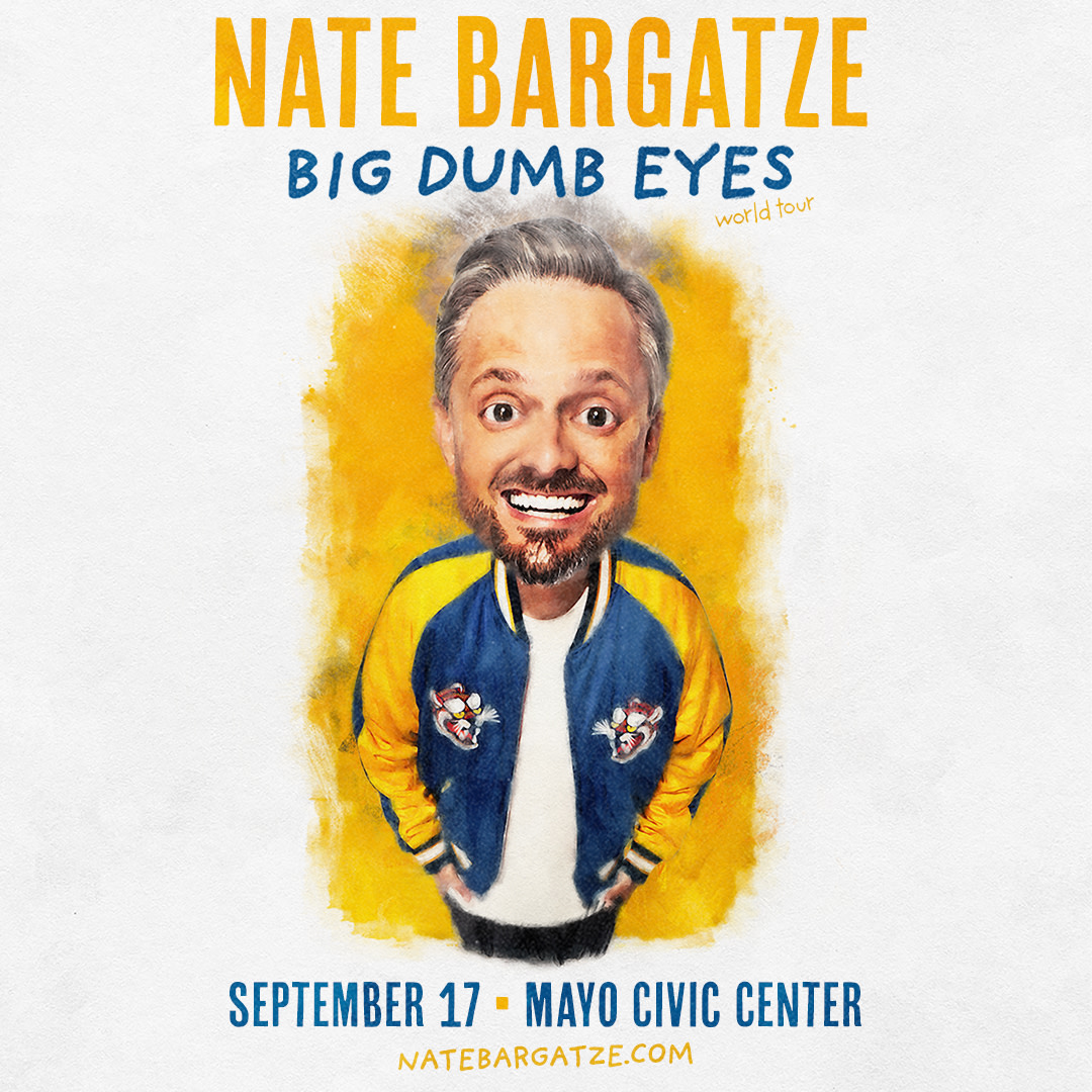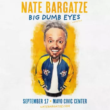 Coming off of a big year and the success of his 2024 The Be Funny Tour, Comedian Nate Bargatze announced today 66 dates for his 2025 BIG DUMB EYES WORLD TOUR that will include a stop at Mayo Civic Center on June 19, 2025 at 7:00 p.m. Tickets will go on sale Friday, December 6 at 10:00 a.m. with presale beginning Wednesday, December 4 at 10:00 a.m. The new tour will include all new material with more dates to be announced soon. For more information and tickets, visit natebargatze.com.