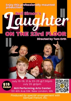 The excitement never ends as America’s favorite comedy playwright tells the story of the craziness that happened when he first joined New York’s top comedy writers. Neil Simon wrote “Laughter on the 23rd Floor” right after he won the Pulitzer Prize. Hysterically funny is the best way to describe this play directed by Tom Orth. Come to the Performing Arts Center in New London mid-July to enjoy this professionally mounted production.