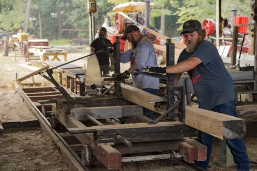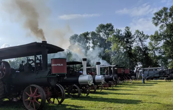 Your gate admission includes: Steam Traction Engines, Gas Engines, Caterpillar Building and equipment, School, Antique Cars & Trucks, Tractor Pulls, Shingle Mill, Stationary Steam, Sawmill & Planer Shed, Threshing, Rock Crushing, Corn Chopping, Spinning, Quilting, Weaving, Pottery, Large Fairbanks Engine, 1920's Red Crown Gas Station, General Store, Print Shop, Train Rides, Blacksmith Shop, Log House & Barn, Historical Church, Milwaukee Road Depot & Memorabilia, Chainsaw Artist, Dairy Display, Children's Activities & Barnyard, and music. Golf cart rentals, food vendors and a large Flea Market are also available. Come join the fun and see what the show has to offer.