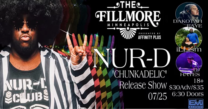 Nur-D is celebrating the release of “Chuckadelic” at Fillmore Minneapolis on Friday, July 25th with special guests Dakotah Faye, iLLism, and DJ Hayes! Make sure to get your tickets now!